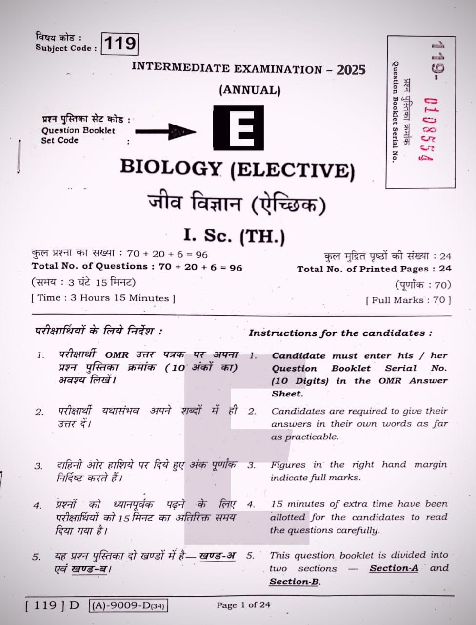 बिहार स्कूल एग्जामिनेशन बोर्ड द्वारा पूरी तैयारी कर ली गई है 1 फरवरी से इंटर की परीक्षा शुरू हो रही है और पहले दिन इंटर की परीक्षा विज्ञान संकाय के परीक्षार्थियों के साथ शुरू होगी प्रथम पाली में बायोलॉजी का पेपर होना है तो बायोलॉजी के प्रश्न पत्र सेट ए से लेकर सभी सेट के प्रश्न पत्र उत्तर आप लोग यहां से डाउनलोड कर सकते हैं!