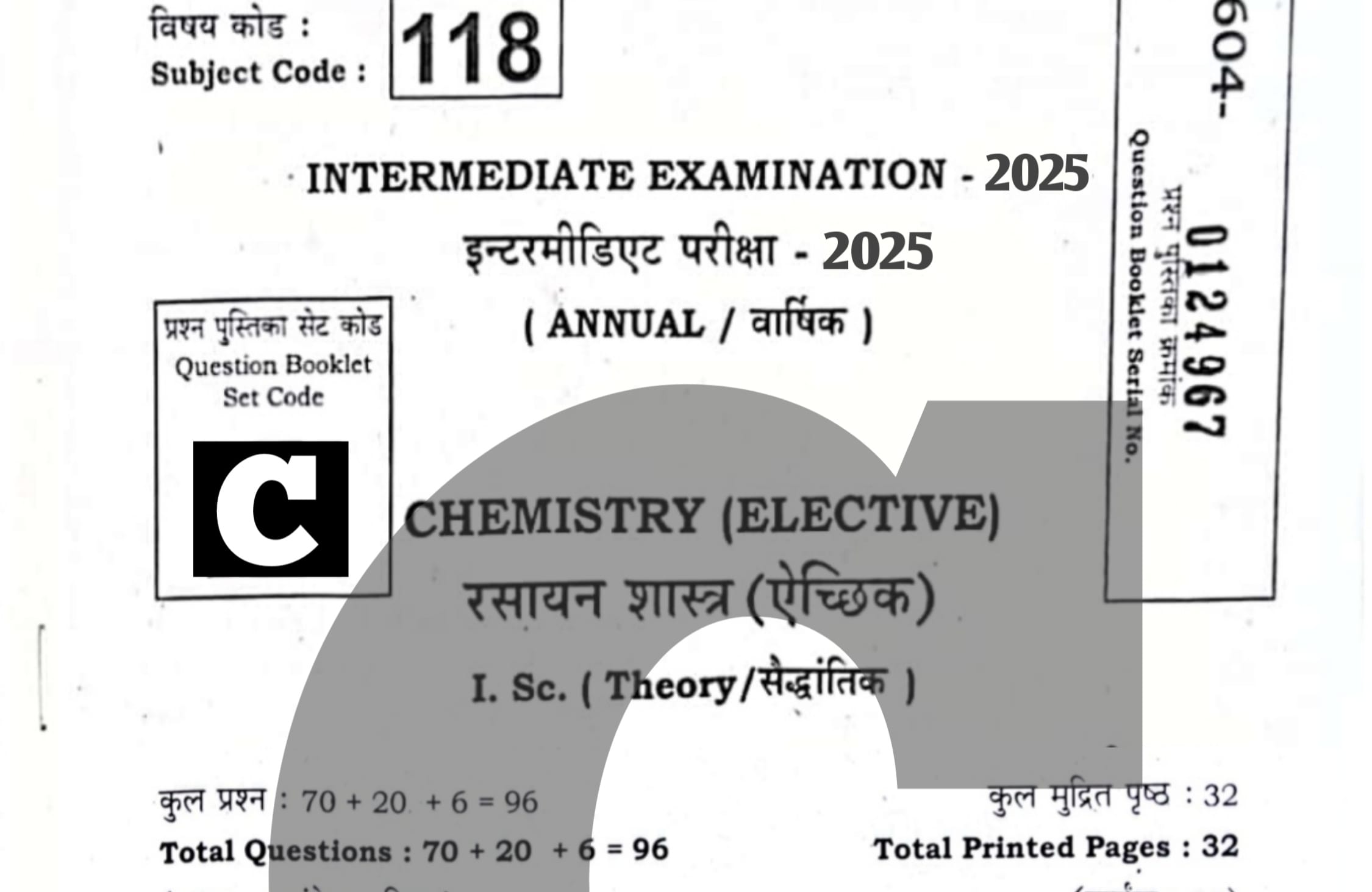 - विज्ञान संकाय के सभी छात्र एवं छात्राएं जो केमिस्ट्री की परीक्षा दे चुके हैं अपने क्वेश्चन पेपर में दिए गए सेट कोड को देखें!
