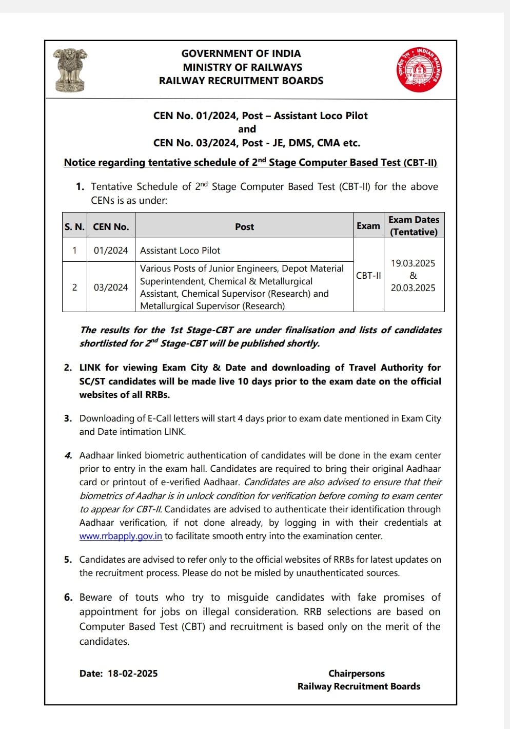 रेलवे रिक्रूटमेंट बोर्ड आरआरबी के द्वारा रेलवे असिस्टेंट लोको पायलट परीक्षा 2025 के लिए सिलेक्शन प्रोसेस को जारी कर दिया गया है अभी हाल ही में 25 नवंबर से 29 नवंबर 2024 के बीच पेपर वन आयोजित हुआ और पेपर 2 की परीक्षा भी जल्द होगी इसके बाद कंप्यूटर एप्टीट्यूड टेस्ट होगा और अंत में डॉक्यूमेंट वेरिफिकेशन किया जाएगा उसके बाद फाइनल सिलेक्शन होगा RRB ALP Result 2025 कैसे देखना होगा आगे इसकी जानकारी उपलब्ध है!